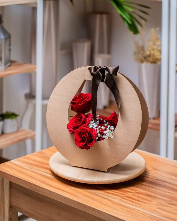 Media docena de selección de rosas en cesta de cartón. Puede variar el tono de la flor.